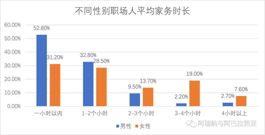 家务本身就是在家庭这一个组织中产生的,当女性将更多的时间投入到家务之中去时,她就被家庭“裹挟“了,不得不成为家庭的附属品;当女性的平均工作时长低于男性时,男性依然占领着经济基础的主导地位,也因此阻碍着”性别平等“的继续推进。