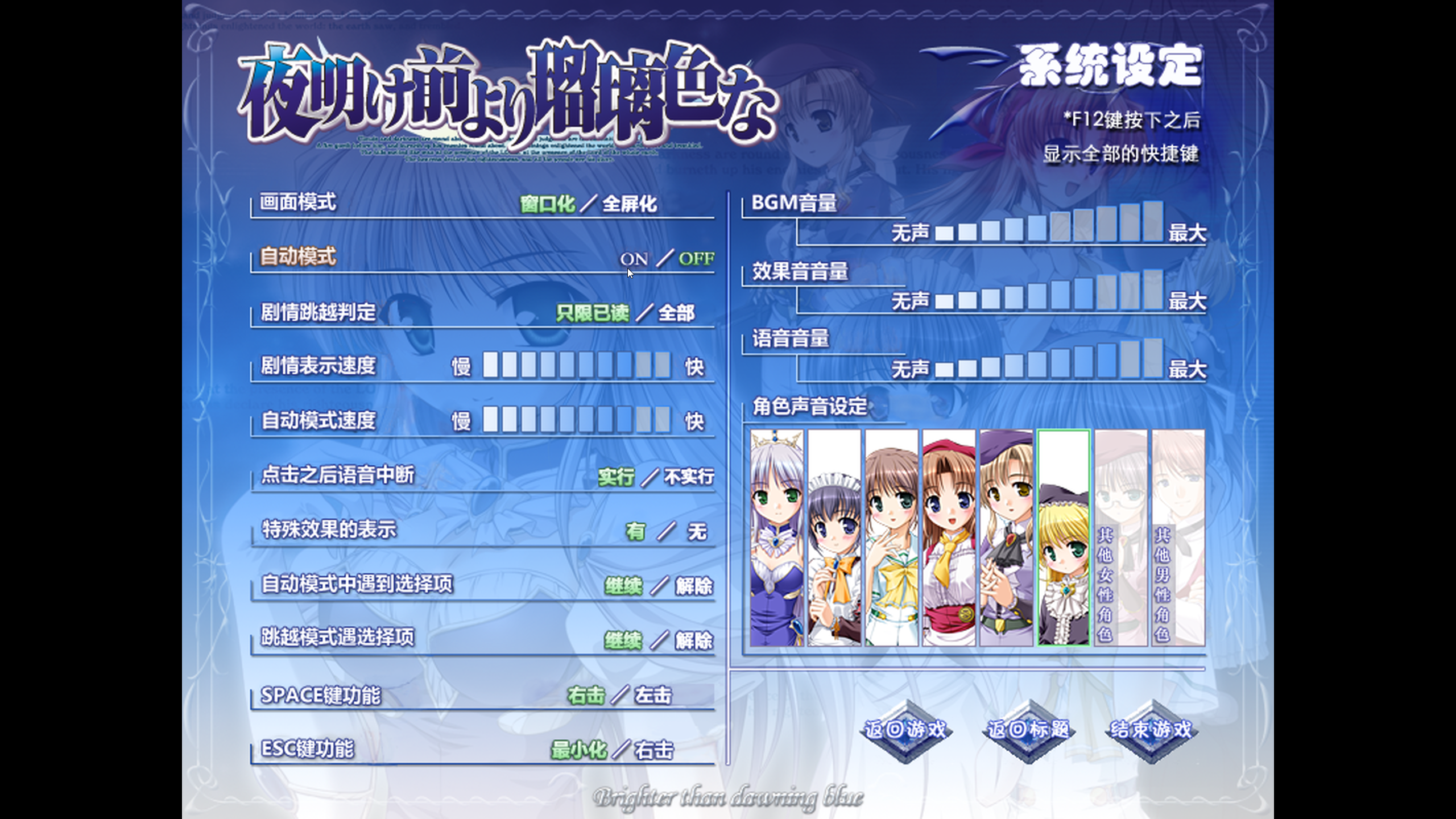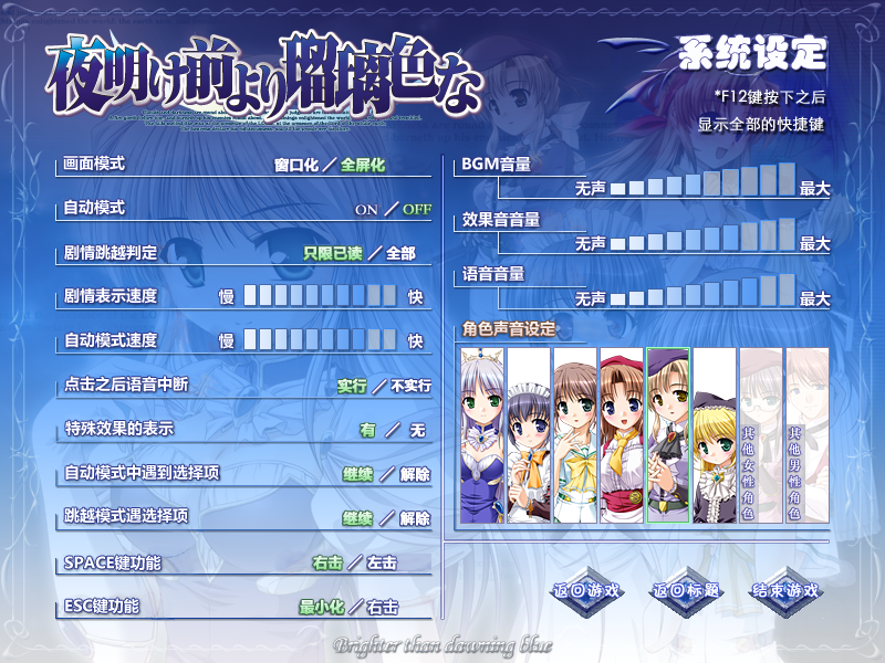 《黎明前的琉璃色》可以说是我早年间仍处于galgame探索阶段的体验过的作品,虽说那时的我那时并没有体验太多内容,甚至可以说那时看过什么剧情都记忆模糊了。八月社一直是我比较钟意的一个社团,《黎明前的琉璃色》各位女主的衣品和画风也是我直到现在都相当钟意的。因而本文以这部作品为引子和示例,希望能够给读者带来一点帮助和启发,也希望读者如果有任何意见和建议能够积极友善地和我交流。